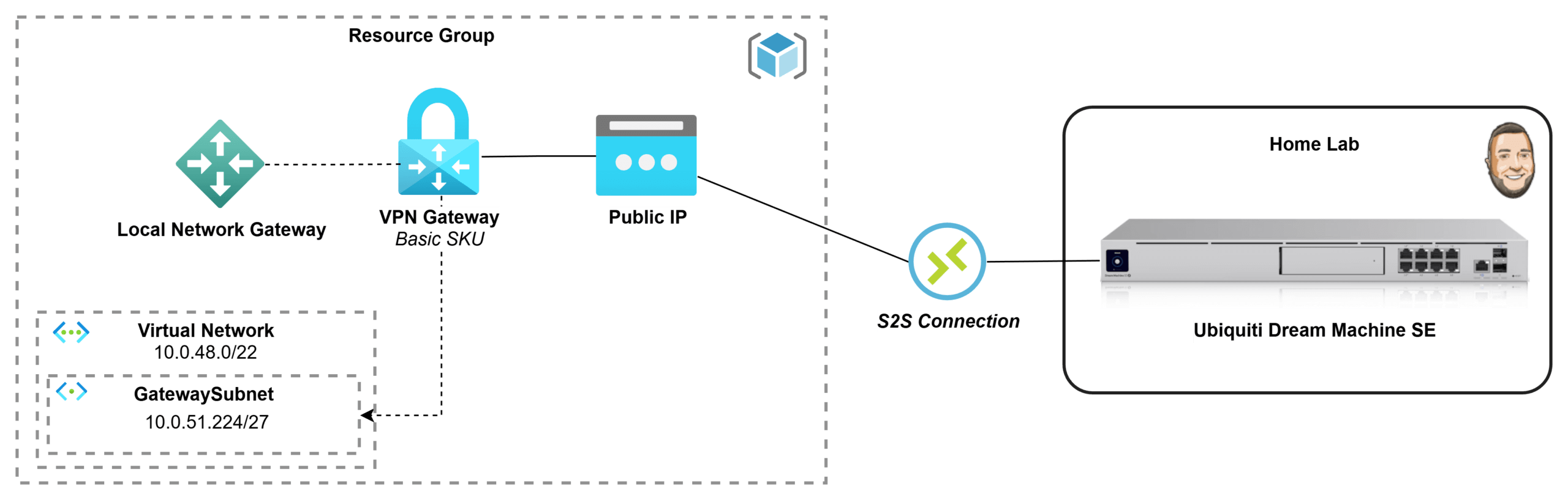 If you’ve got an Azure subscription through Visual Studio Enterprise, you’ve basically been handed the perfect playground for testing and learning in the cloud. But once you start building resources inside a private Azure network, you quickly hit the next challenge: how do you securely connect it back to your home lab without exposing everything to the internet? In this post, I’m going to go through the process of how I deployed a Basic Azure Virtual Network Gateway and connected it to my Ubiquiti Dream Machine, creating a secure site-to-site VPN tunnel between my Azure VNet and my home network. I wanted to document what that process looked like for me and share it in case it helps someone else doing the same thing.